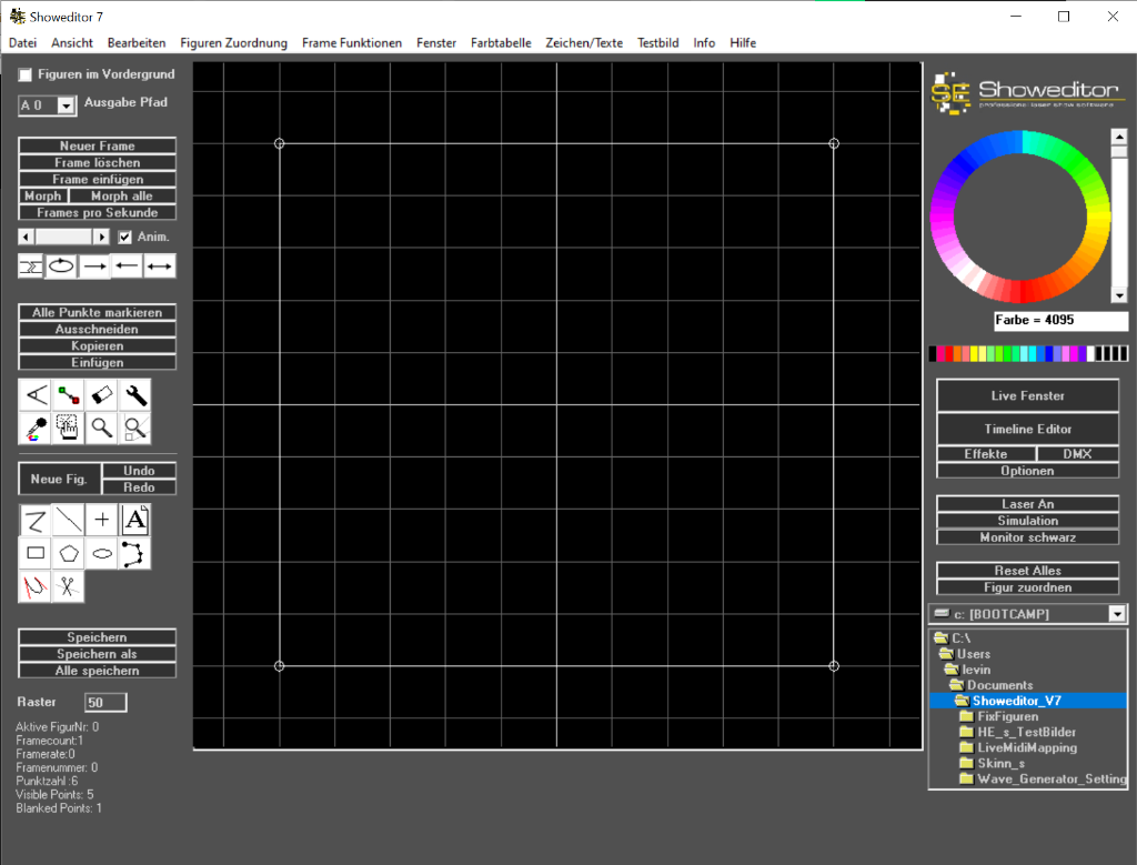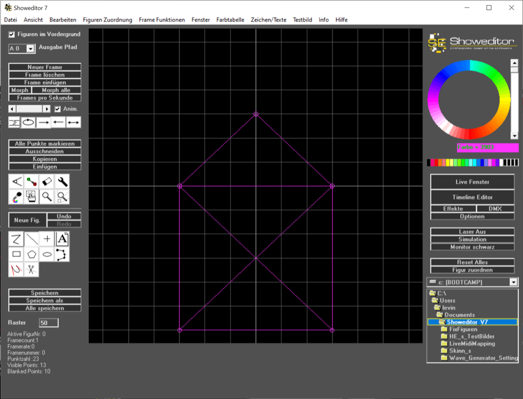 Tip: wenn man die Simulation einschaltet, anstatt der realen Laserausgabe, dann sieht man in der Fensterzeile der Simulation die tatsächlich ausgegebene Punktzahl, incl. aller Optimierungen wie Interpolation, Farbwechsel usw...