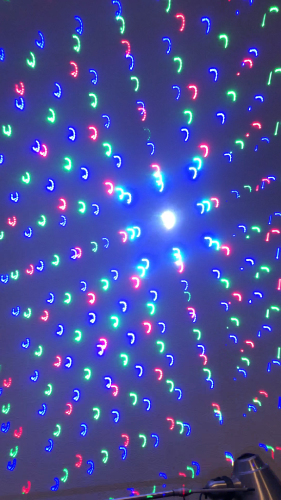 es sieht so aus, als währe da ein Grating Effekt vor dem Austrittsfenster des Projektors... könnte das sein? kann man das evtl. per Dip Schalter oder DMX "ausschwenken" ??